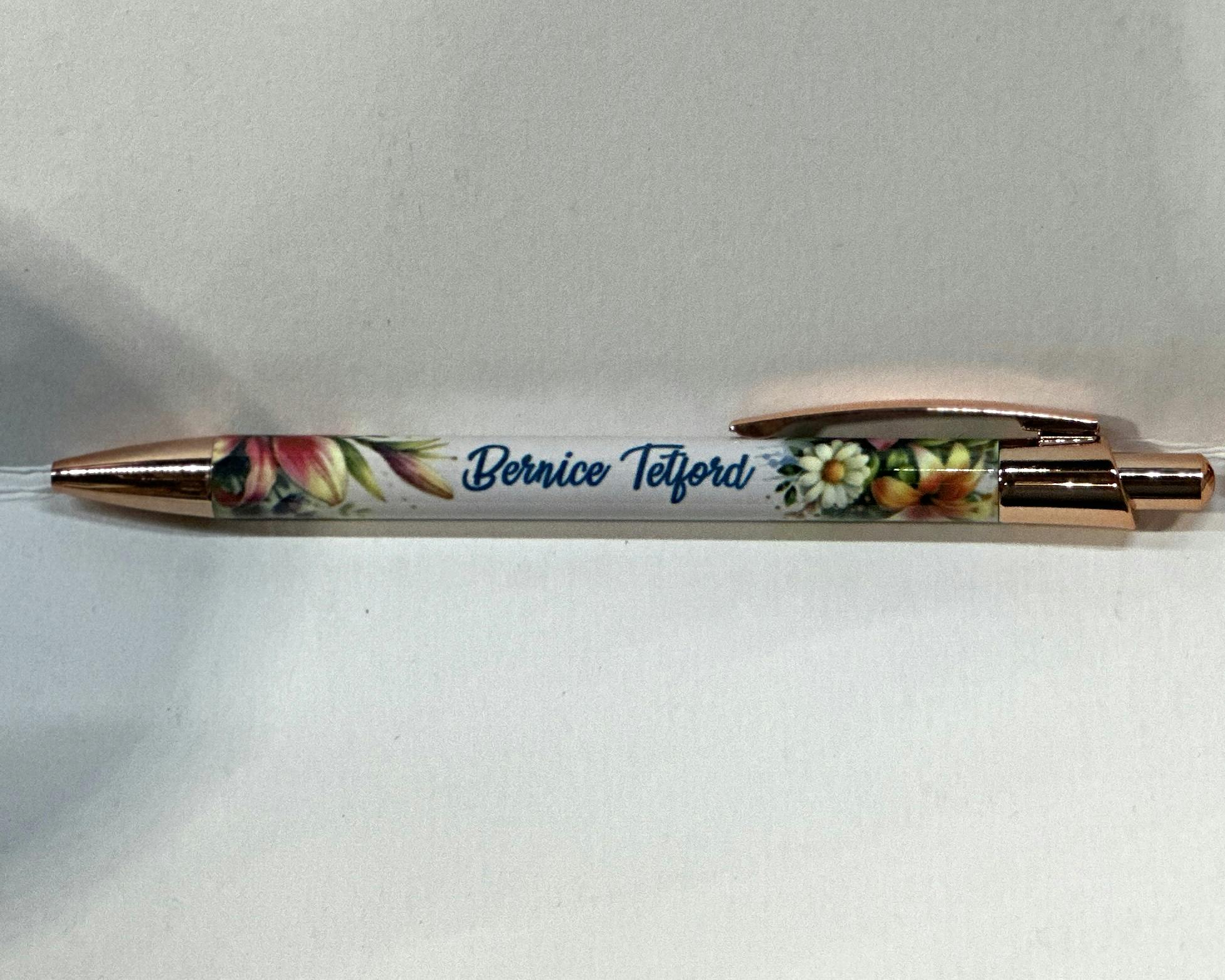 Rose Gold or Silver accented full color pens. Personalised with name and/or text. $7